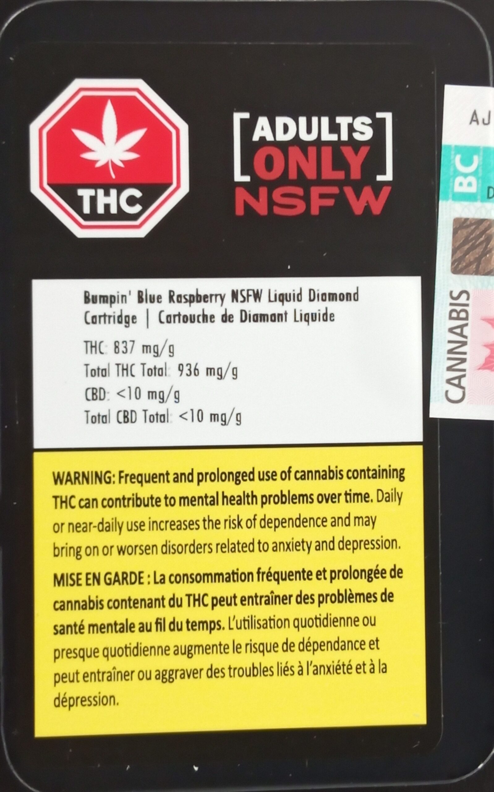 Introducing Adults Only Bumpin’ Blue Raspberry NSFW Liquid Diamond Cartridges. This sativa-dominant, 510-thread vape is packed with insanely potent, liquified THC-diamonds mixed with botanical terpenes that are bouncin’ with delicious tart citrus and berry flavours. All Adults Only NSFW Liquid Diamond vapes are made using advanced and industry-leading, BHO extraction equipment and processes. You won’t find any added solvents, pigments, fillers, or waxes in this premium extract.
