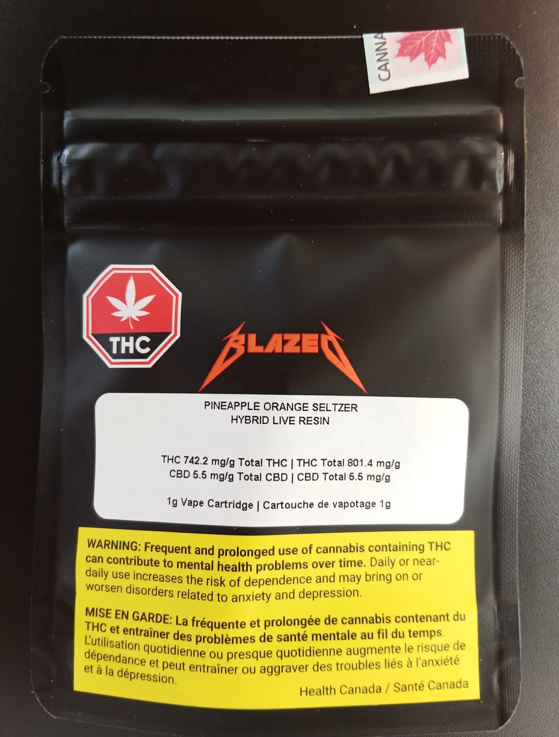 BLAZED 2.0 – PINEAPPLE ORANGE SELTZER LIVE RESIN CARTRIDGE – 1 GRAM