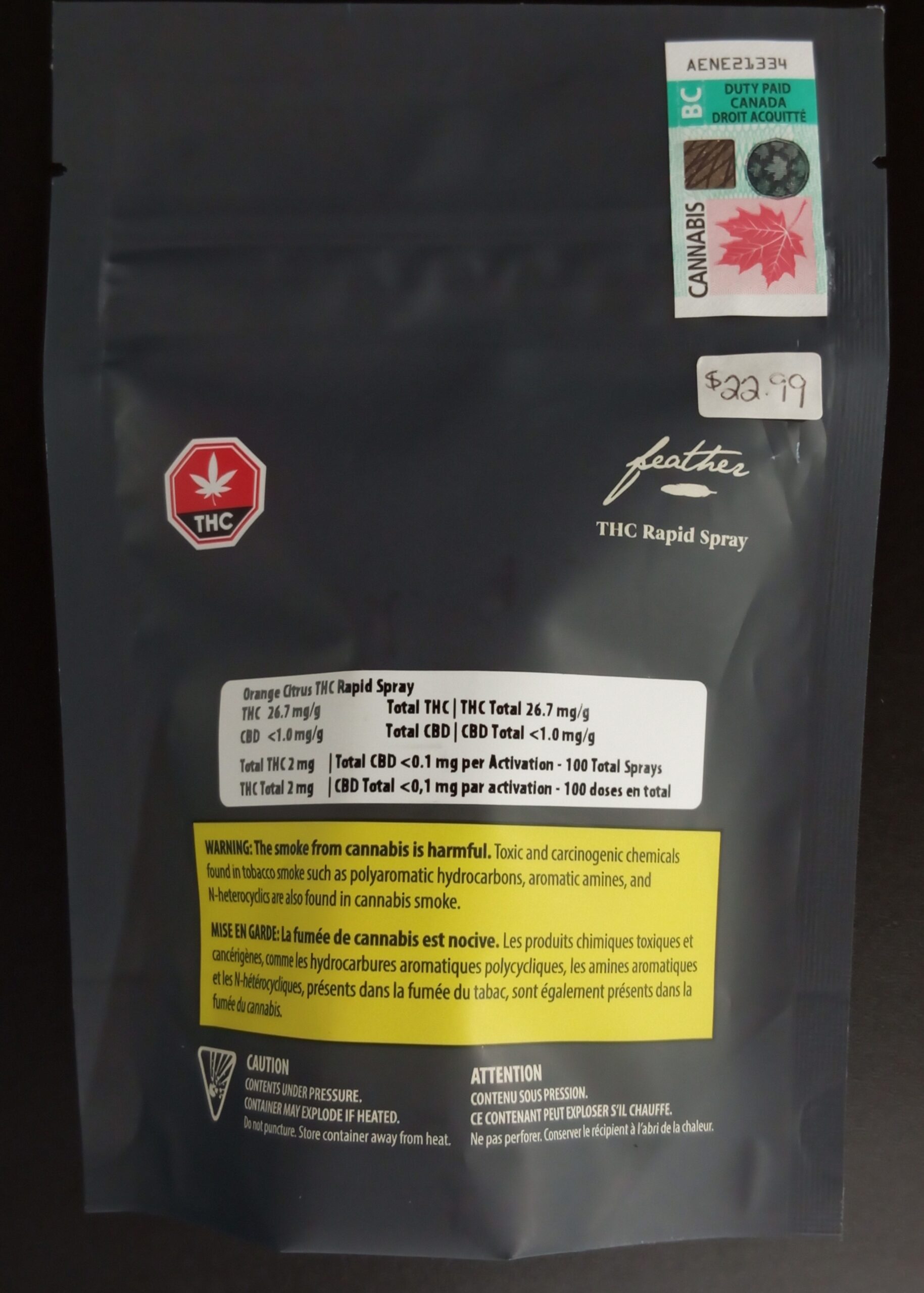 FEATHER – ORANGE CITRUS THC RAPID SPRAY – 8.33 MILLILITER