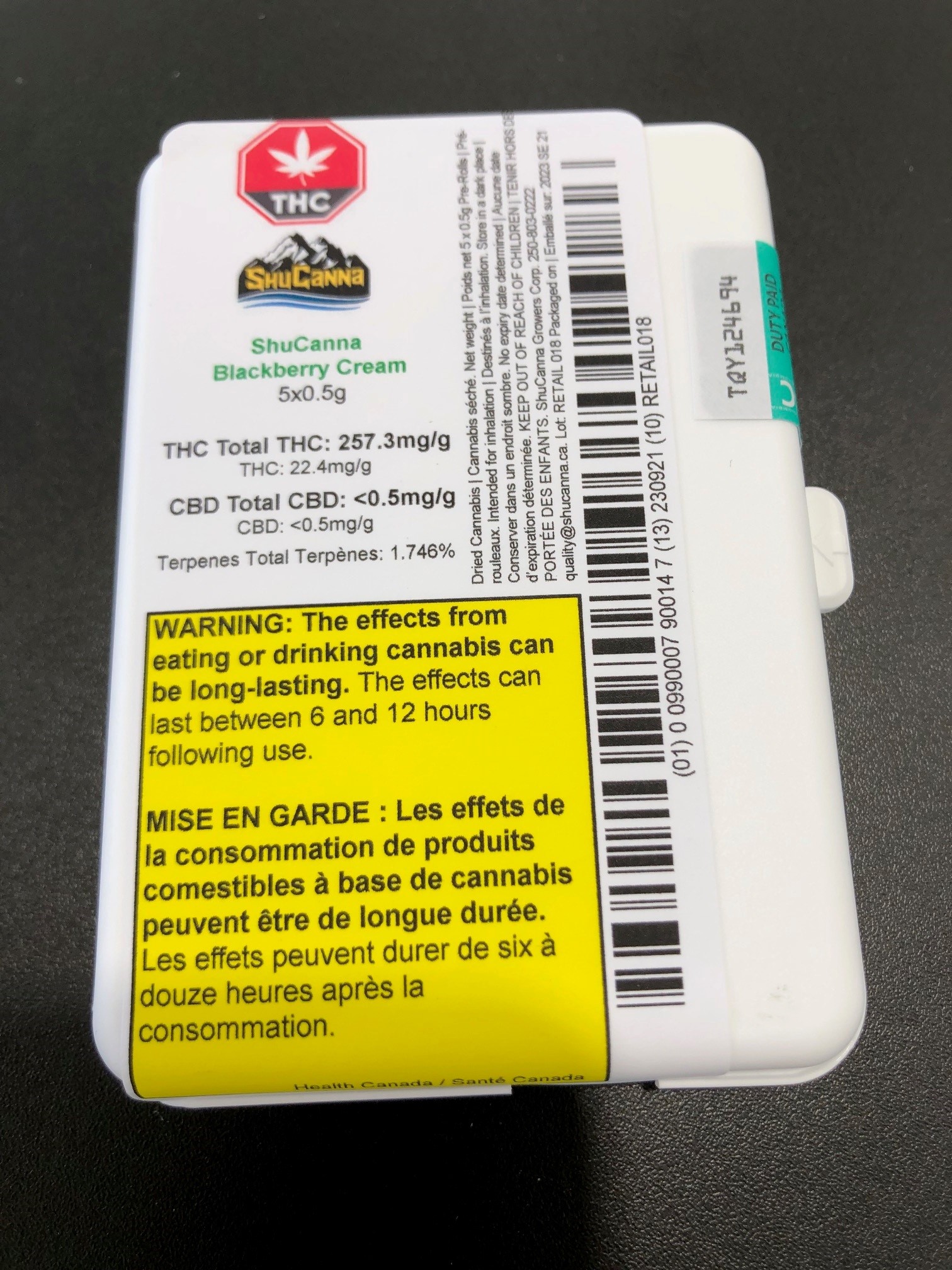 / ShuCanna Blackberry Cream Pre Roll 5 x 0.50