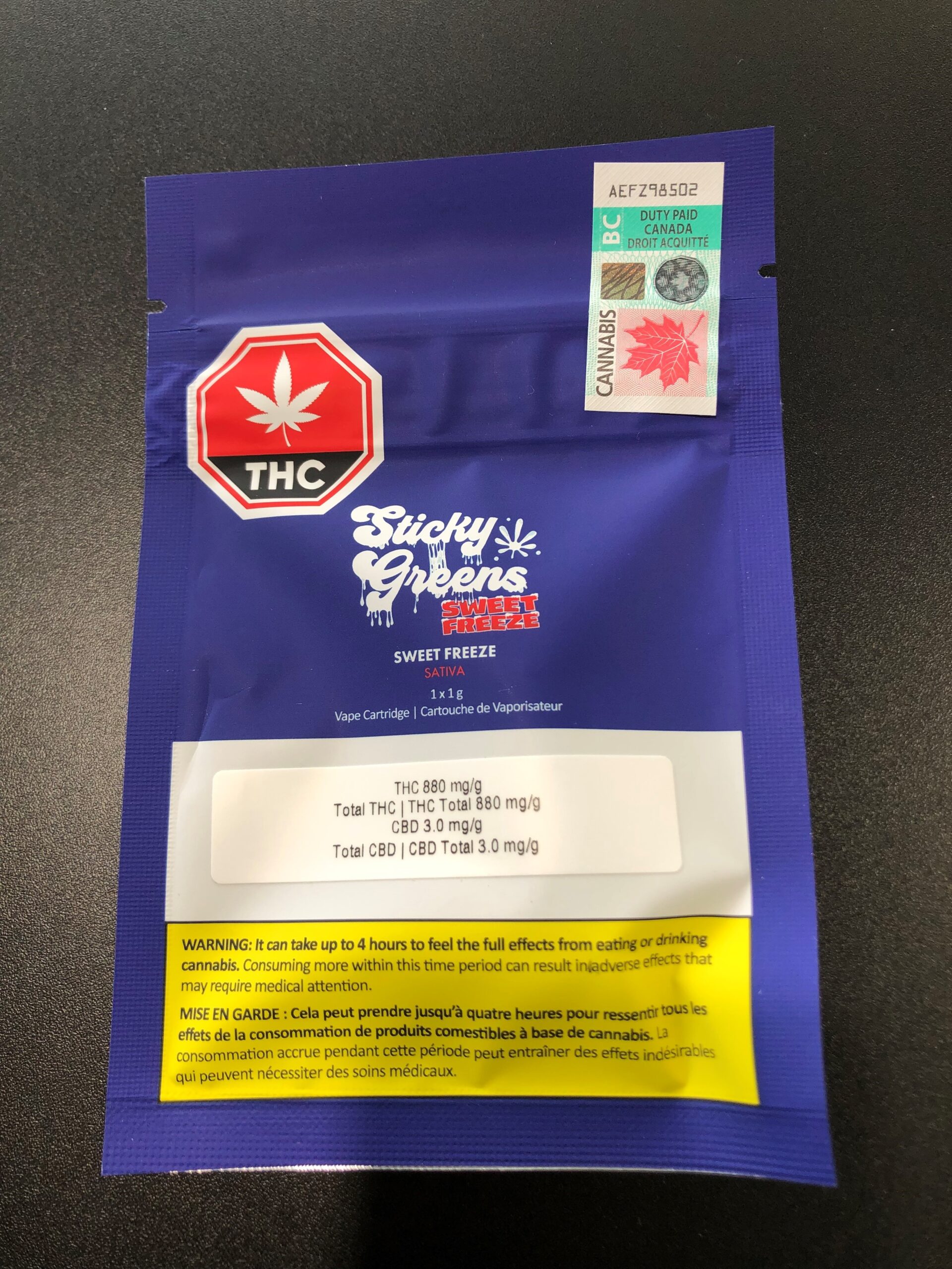 STICKY GREENS – STICKY GREENS – SWEET FREEZE VAPE CARTRIDGE – 1 GRAM